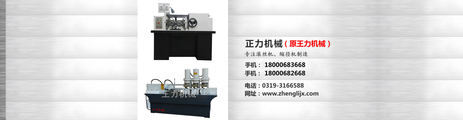 邢臺(tái)正力機(jī)械制造有限公司是國(guó)內(nèi)高端平價(jià)滾絲機(jī)專(zhuān)業(yè)化制造企業(yè)。 本公司是集研制、開(kāi)發(fā) 、生產(chǎn)與銷(xiāo)售為一體的大型機(jī)械廠(chǎng)家,現(xiàn)主要產(chǎn)品有:滾絲機(jī),螺紋機(jī)床,縮經(jīng)機(jī),拔料機(jī),冷軋壓圓機(jī),雙組拉絲機(jī)等各種機(jī)械。地處燕趙大地南部邢臺(tái)市,是省級(jí)重合同、守信用、產(chǎn)品質(zhì)量穩(wěn)定型企業(yè),河北省消費(fèi)者協(xié)會(huì)信的過(guò)產(chǎn)品,產(chǎn)品暢銷(xiāo)全國(guó)各地,深受用戶(hù)的好評(píng)。          現(xiàn)擁有Z28-40、80、150、200、280、63型系列在五金建筑、汽摩配件、交通電力、標(biāo)準(zhǔn)件制作等高精度產(chǎn)品加工行業(yè)中,對(duì)高強(qiáng)度螺紋、網(wǎng)紋、花鍵、直斜紋、梯形螺紋、特殊軸類(lèi)的滾軋加工有很強(qiáng)的優(yōu)越性,以高效、精密、快捷的工作原理深受廣大用戶(hù)的信賴(lài)。         專(zhuān)用的液壓縮徑機(jī)WL-25、36、48、60、型操作簡(jiǎn)便,適用范圍廣,生產(chǎn)效率高,使金屬擠壓快速成型,節(jié)約了原材料,提高了金屬密度和抗拉強(qiáng)度         本公司長(zhǎng)期供應(yīng)各種滾絲輪、縮徑機(jī)模具等各種配件。          產(chǎn)品暢銷(xiāo)河北,河南,山西,山東、遼寧、黑龍江、吉林、北京、天 津等省市自治區(qū)。我們不斷引進(jìn)國(guó)內(nèi)外先進(jìn)技術(shù),不斷優(yōu)化產(chǎn)品結(jié)構(gòu),精心鑄造產(chǎn)品質(zhì)量。王力品牌系列滾絲機(jī)、縮徑機(jī)、絲杠機(jī)是根據(jù)國(guó)內(nèi)的先進(jìn)機(jī)型加以改進(jìn),具有結(jié)構(gòu)設(shè)計(jì)科學(xué),結(jié)構(gòu)合理、能耗低、精度高、 使用壽命長(zhǎng)等優(yōu)點(diǎn)。         我們正被更多的朋友接受,認(rèn)可,因?yàn)槲覀冇谜嬲\(chéng)……